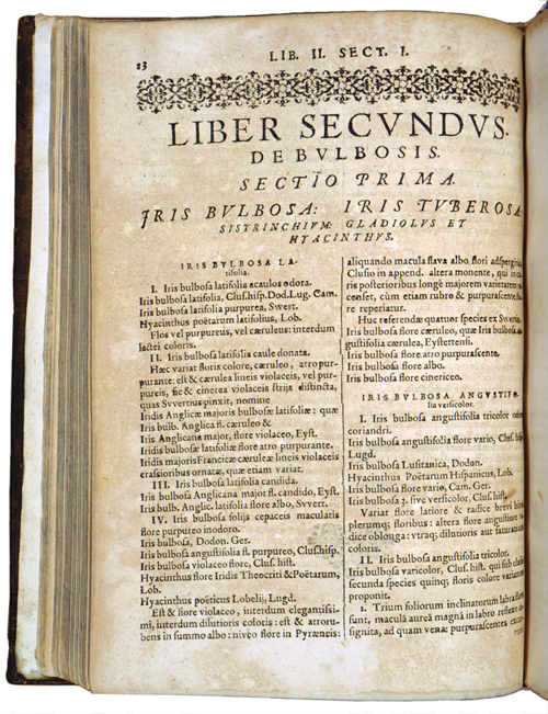 Bauhin, a Swiss botanist and anatomist, separated botany from materia medica, nomenclaturally distinguished genera from species, and discarded alphabetical enumeration of plants for groupings according to plant affinities. He was also a pioneer in binomial nomenclature. His Pinax (Basel, 1623) organized the names and synonyms of 6,000 species and dominated botany for a century. Right: HI Archives portrait no. 4. |