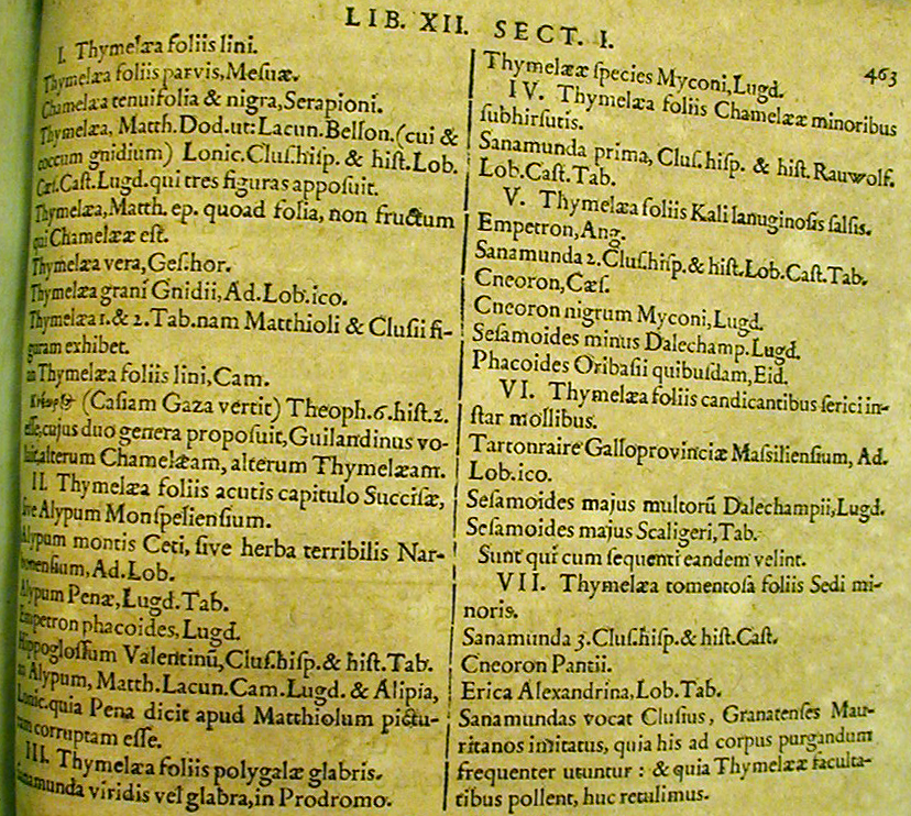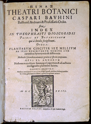 Gaspard Bauhin (15601624). Pinax Theatri Botanici ... (Basel, 1623). Pinax Theatri Botanici contained names and synonyms for 6,000 species. This publication and Prodromus Theatrici Botanici (Frankfurt, 1620) marked a high point in 16th17th-century botany. When Linnaeus cites Bauh. pin., he's referring to Gaspard Bauhin (15601624), Pinax Theatri Botanici ... (Basel, 1623). |