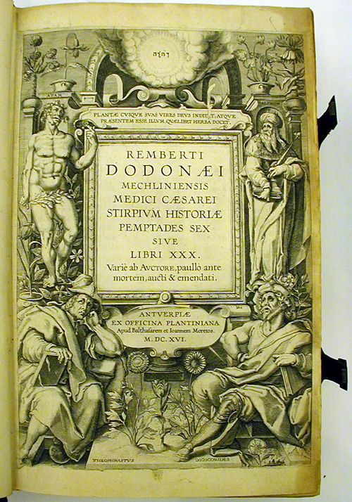 Dodoens was a follower of Bock and Fuchs, but he produced a Flemish flora, his Cruydeboek (Antwerp, 1554), that moved away from Fuchs’ alphabetical listing of plants. Instead, Dodoens grouped plants by their properties and reciprocal affinities. His Stirpium Historia Pemptades Sex Sive Libri XXX (Antwerp, 1583, 1616) divided plants into 26 groups and included a wealth of new illustrations. Right: HI Archives portrait no. 2. |