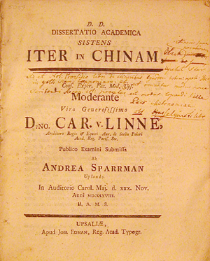 Andreas Sparrman (17481820). Iter in Chinam