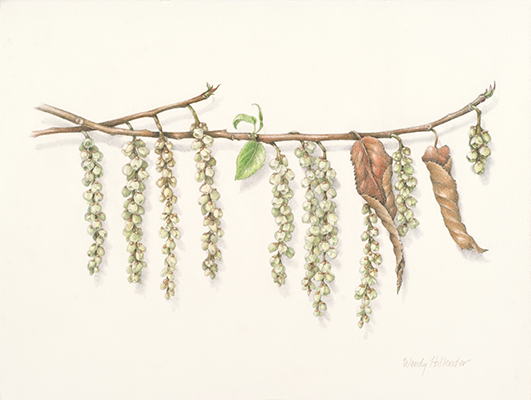 Stachyurus praecox 1 [Stachyurus praecox Siebold & Zuccarini, Stachyuraceae], colored pencil on paper by Wendy Hollender (1954–), 2008, 30.5 × 35.6 cm, reproduced courtesy of the Brooklyn Botanic Garden.